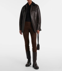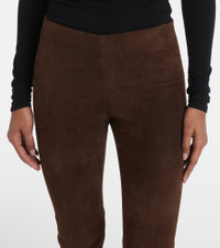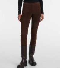 These suede slim pants are cut for a clean, streamlined fit with a refined finish, offering a modern essential in a luxurious texture. Look to Vince when building a timeless wardrobe of elevated yet understated styles. Product Details - Material: 100% lamb leather - Care instructions: dry clean - Made in China - Designer color name: Chocolate - Item color: brown - Item number: P01058970 Size & Fit - True to size - Elasticated waist - Slightly stretchy fabric - Slim-leg - The model seen in the picture is 178cm-5'10" and wearing a size XS