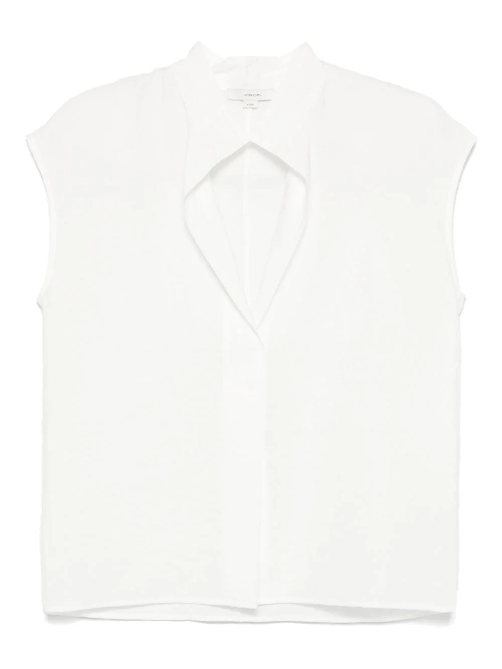 voile cap-sleeve blouse Highlights - White - Band collar - V-neck Imported Composition Rayon 77%, Nylon 23% SIZE & FIT Model measurements Height 5 ft 11 in(1.8 m) Bust/Chest 31.49 in(80 cm) Hips 36.61 in(93 cm) Waist 24.4 in(62 cm) FittingInformation Designed for a relaxed fit, this piece allows for comfort and movement when worn Made from a lightweight non-stretch fabric