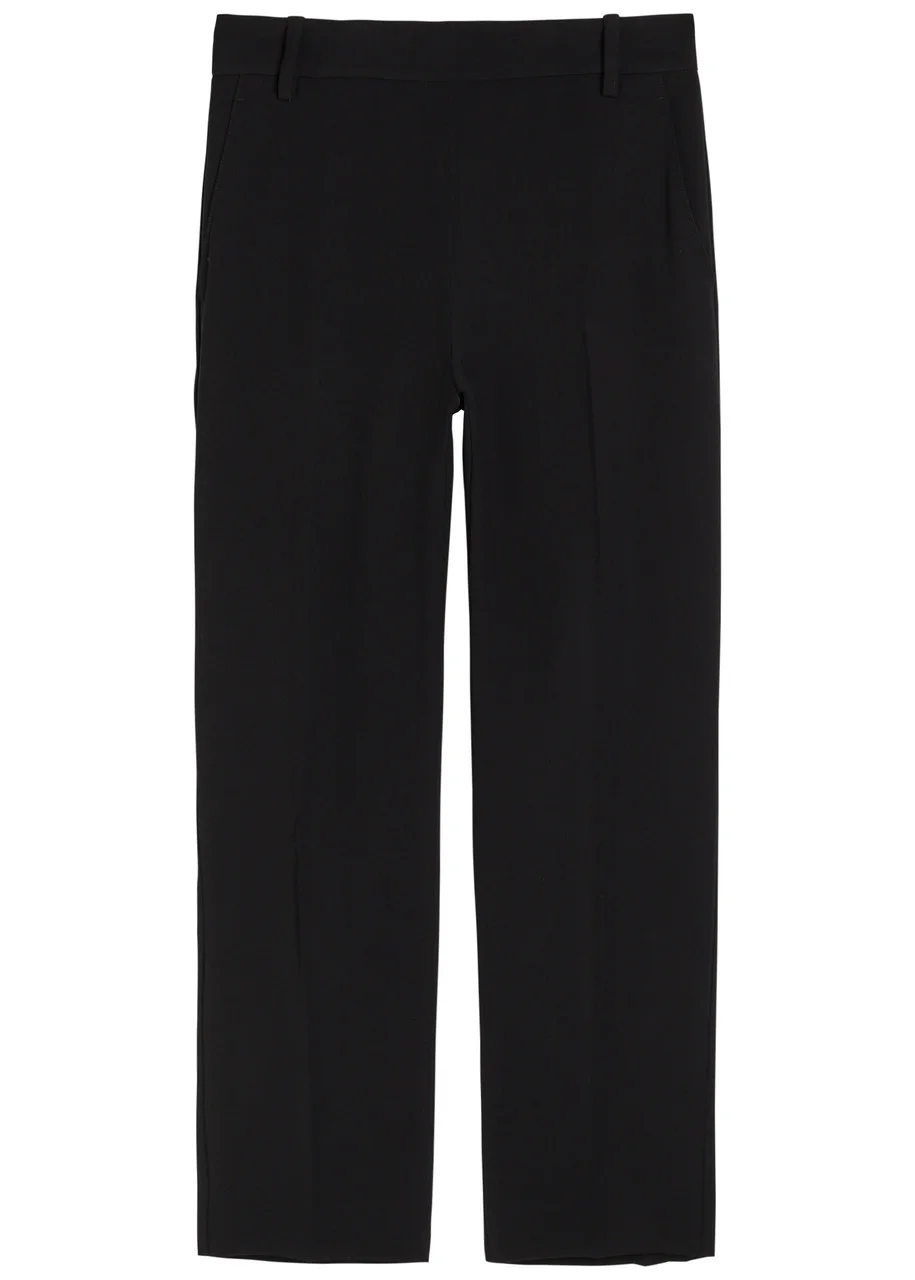 Info & Care Vince woven trousers Belt loops, partially elasticated waist, side slip pockets, pressed crease through legs, back slit pockets Pull on; 55% recycled polyester, 45% polyester Hand wash; Size & Fit Inside leg length: 27.5 inches/ 70.5cm Midweight Mid-rise fit, tapered cut Model is 5'9"/ 175cm and wears a size small