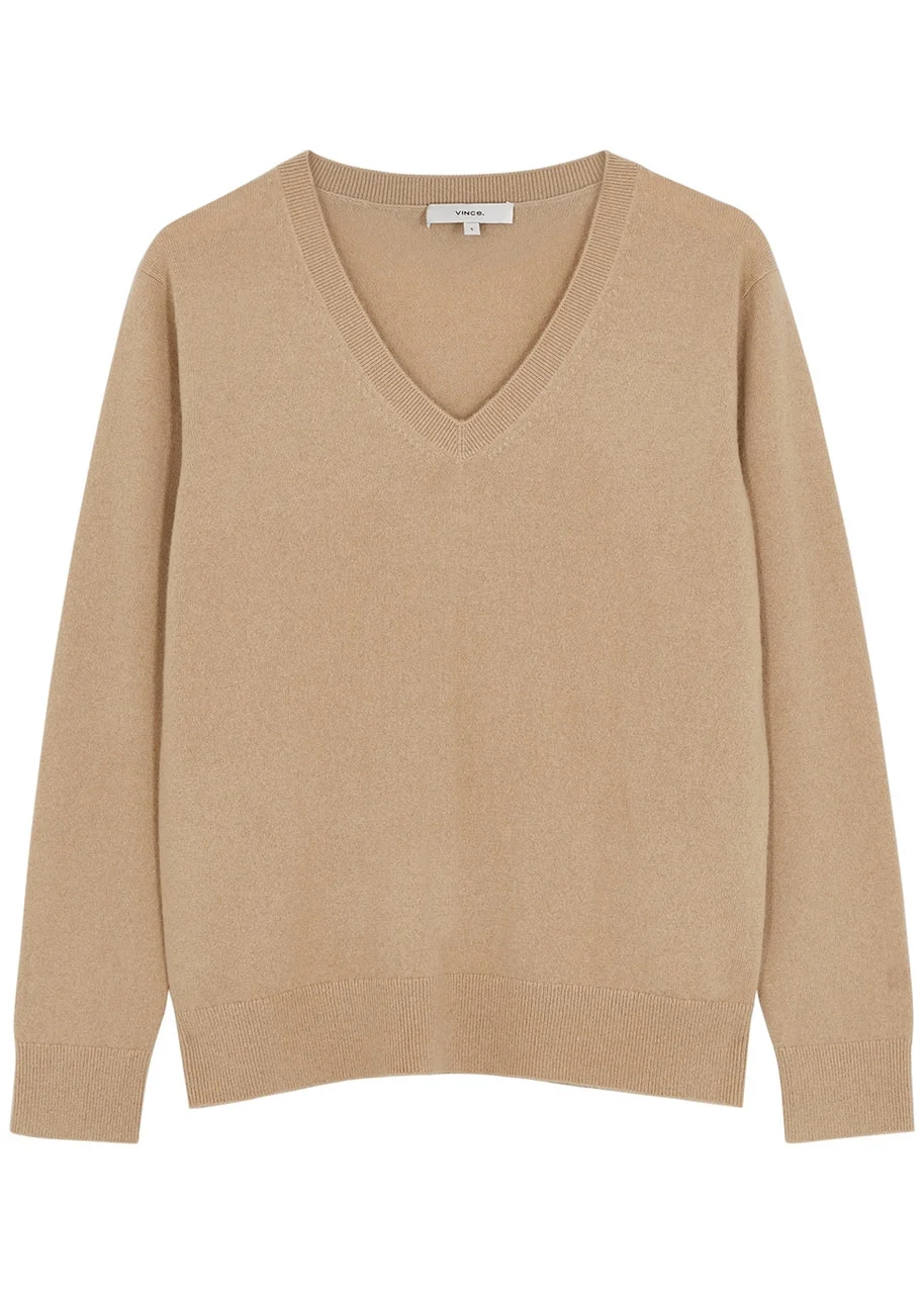 INFO & CARE - Vince cashmere jumper - V-neck, dropped shoulders, ribbed trims - Slips on - 100% cashmere; rib: 94% cashmere 4% nylon 2% spandex - Hand wash SIZE & FIT - Length shoulder to hem: 26 inches/ 66cm - Midweight - Relaxed fit - Model is 5'9"/ 175cm and wears a size small