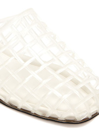 almond caged flat mules Highlights - White - Caged design - Flat sole - Slip-on style Imported Composition Outer: Polyurethane 100% Sole: Leather 100% Lining: Leather 100%