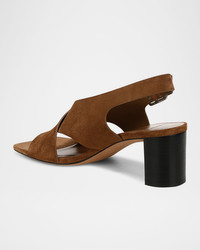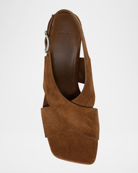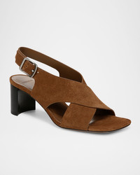 - Vince "Omega" sandals featuring overlapping soft suede straps that gently hug the foot atop a sculptural stacked heel. - 2.36 in / 60 mm block heel - Open toe - Crisscross vamp - Slingback buckle strap - Leather outsole - Lining: Leather - Spot clean - Imported Online Inquiries: NMS21_X6RG8 Store Inquiries: #4912691
