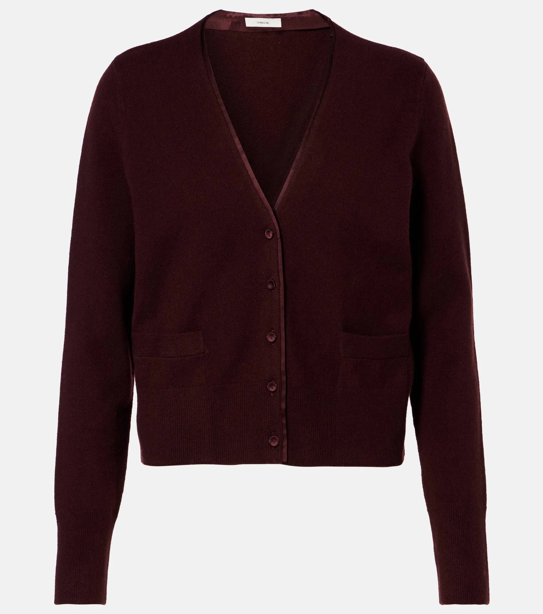 Look to Vince when building a timeless wardrobe of elevated yet understated styles. This cardigan is knitted from a soft blend of wool and cashmere, detailed with tonal satin trims along the neckline and front placket. Product Details - Material: 66% wool, 28% cashmere, 4% nylon, 2% elastane - Care instructions: hand wash cold - Made in China - Color: burgundy - Designer color name: Oxblood - Item color: burgundy - Closure: buttoned front - Pockets: patch pockets - Cuff: ribbed - Hem: ribbed - Item number: P01123916 Size & Fit - True to size - Straight fit - Stretchy fabric - Slightly cropped - The model seen in the picture is 178cm-5'10" and wearing a size XS