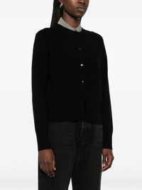 ribbed-knit cardigan Highlights - Black - Front press-stud fastening - Two front patch pockets - Crew neck - Long sleeves Imported Composition Wool 68%, Cashmere 27%, Nylon 4%, Spandex/Elastane 1% SIZE & FIT Model measurements Height 5 ft 11 in(1.81 m) Bust/Chest 32.67 in(83 cm) Hips 36.22 in(92 cm) Waist 24.4 in(62 cm) FittingInformation Designed for a relaxed fit, this piece allows for comfort and movement when worn Made with a midweight knit, this piece offers some stretch