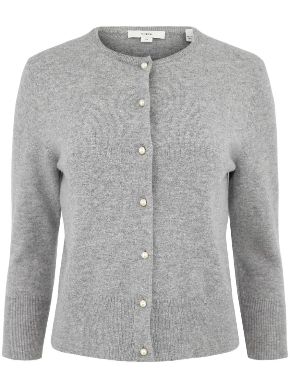 knitted cardigan Highlights - Grey - Wool-cashmere blend - Front button fastening - Faux-pearl buttons - Long sleeves - Ribbed cuffs and hem - Straight hem Imported Composition Wool 67%, Cashmere 28%, Nylon 4%, Spandex/Elastane 1%