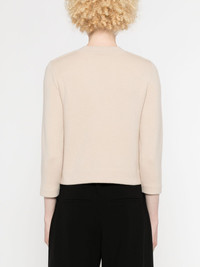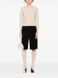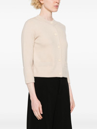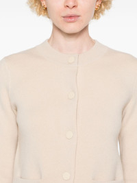 shrunken snap cardigan Highlights - Light beige - Wool-cashmere blend - Knitted construction - Ribbed trim - Crew neck - Two front welt pockets - Long sleeves - Straight hem - Front press-stud fastening Imported Composition Outer: Wool 35%, Cotton 32%, Nylon 17%, Cashmere 15%, Spandex/Elastane 1% Lining: Wool 70%, Cashmere 30% SIZE & FIT Model measurements Height 5 ft 9 in(1.74 m) Bust/Chest 34.64 in(88 cm) Hips 36.61 in(93 cm) Waist 26.37 in(67 cm) FittingInformation Designed for a relaxed fit, this piece allows for comfort and movement when worn Made with a midweight knit, this piece offers some stretch This piece fits true to size – take your usual size
