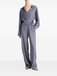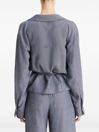 wrap-effect collared top Highlights - Dark-blue - Wrap-effect front - Collared neckline - Long sleeves - Self-tie belt - Buttoned cuffs Imported Composition Viscose 67%, Linen/Flax 24%, Nylon 9% Washing instructions Hand Wash