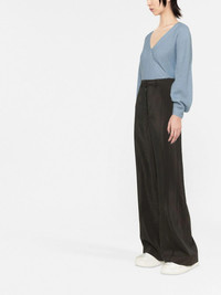 EDITORS'NOTES Vince is known for luxury fabrics and subtle detailing and this V-neck sweater is no exception. It's knitted from wool and mohair-blend with a super soft, ribbed handle. Temper the plunging wrap-effect front with a crewneck tee. SIZE & FIT - Fits true to size, take your normal size - Designed for a relaxed fit - Mid-weight knit - Model is 177cm/ 5'10" and is wearing a size Small DETAILS & CARE - Light-blue ribbed-knit - Slips on - 43% wool, 32% polyamide, 25% mohair - Hand wash or dry clean