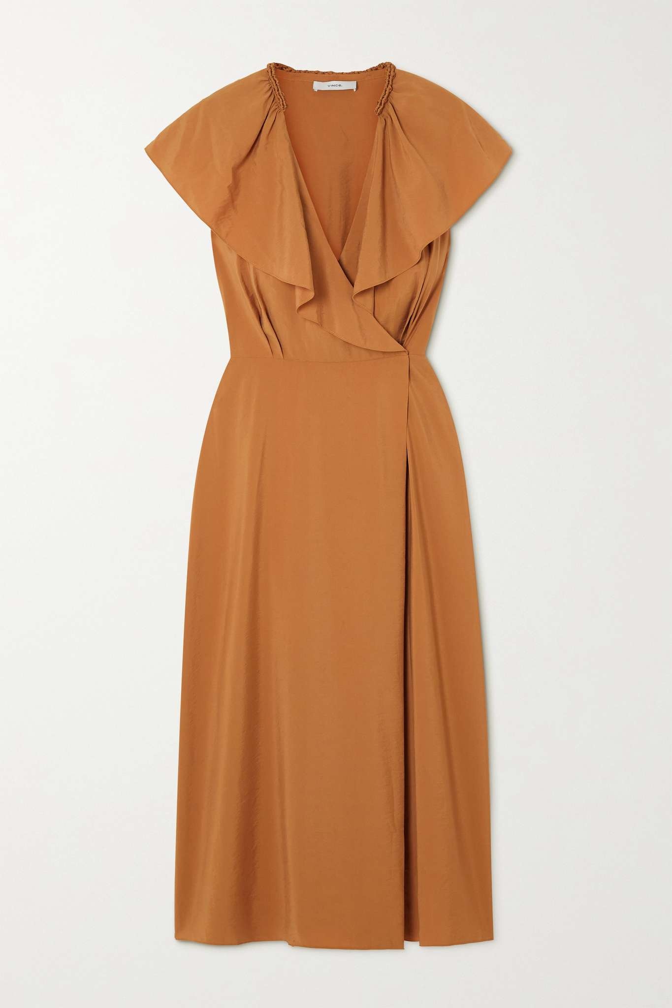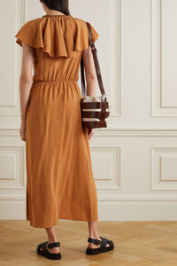 Wrap-effect ruffled woven midi dress