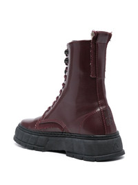 1992 combat boots Highlights - Burgundy - Appleskin™ - Brushed effect - Round toe - Logo-print tongue - Branded heel counter - Loop handle - Branded insole - Ridged platform rubber sole - Front lace-up fastening Imported Composition Sole: Recycled Rubber 70%, Rubber 30% Lining: Recycled Polyester 40%, Polyurethane 10% Outer: AppleSkin™ 100% SIZE & FIT Measurement HEEL 1.77 in(4.5 cm) HEIGHT 5.9 in(15 cm) Sole height 1.37 in(3.5 cm)