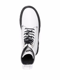 1992 logo-print ankle boots Highlights - White - Recycled polyester blend/recycled rubber blend - Slogan print to the side - Round toe - Front lace-up fastening - Pull-tab at the heel - Flat rubber sole Imported Composition Outer: Apple Leather 100% Lining: Recycled Polyester 40%, Other fibres 30%, Corn Polymer 20%, Polyurethane 10% Sole: Recycled Rubber 70%, Rubber 30% SIZE & FIT Measurement HEEL 1.37 in(3.5 cm) HEIGHT 6.49 in(16.5 cm) Sole height 1.18 in(3 cm)