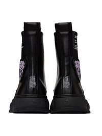 Handcrafted ankle-high PETA-certified buffed Appleskin™ faux-leather boots in black. Text printed and graphic patch at outer side. · Lace-up closure · Logo printed at tongue · Pull-loop at heel collar · Logo embossed at heel counter · Grained faux-leather lining · Textured rubber midsole · Treaded rubber outsole Part of the Viron x Carne Bollente collaboration. Supplier color: Black Upper: synthetic. Sole: rubber. Made in Portugal 232589F113005