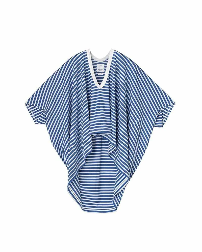 BORDER RUANA TEE COLOR: NAVY, BLUE, GREY SIZE: 0, 1 Poncho T-shirt made from cotton One wash 100% Cotton SIZE 0 : Length 26.7 , Width 35.2 (inch) SIZE 1 : Length 27.9 , Width 36 (inch) Please be aware that the fabric used may vary in color and pattern from item to item. Products may shrink slightly when washed.