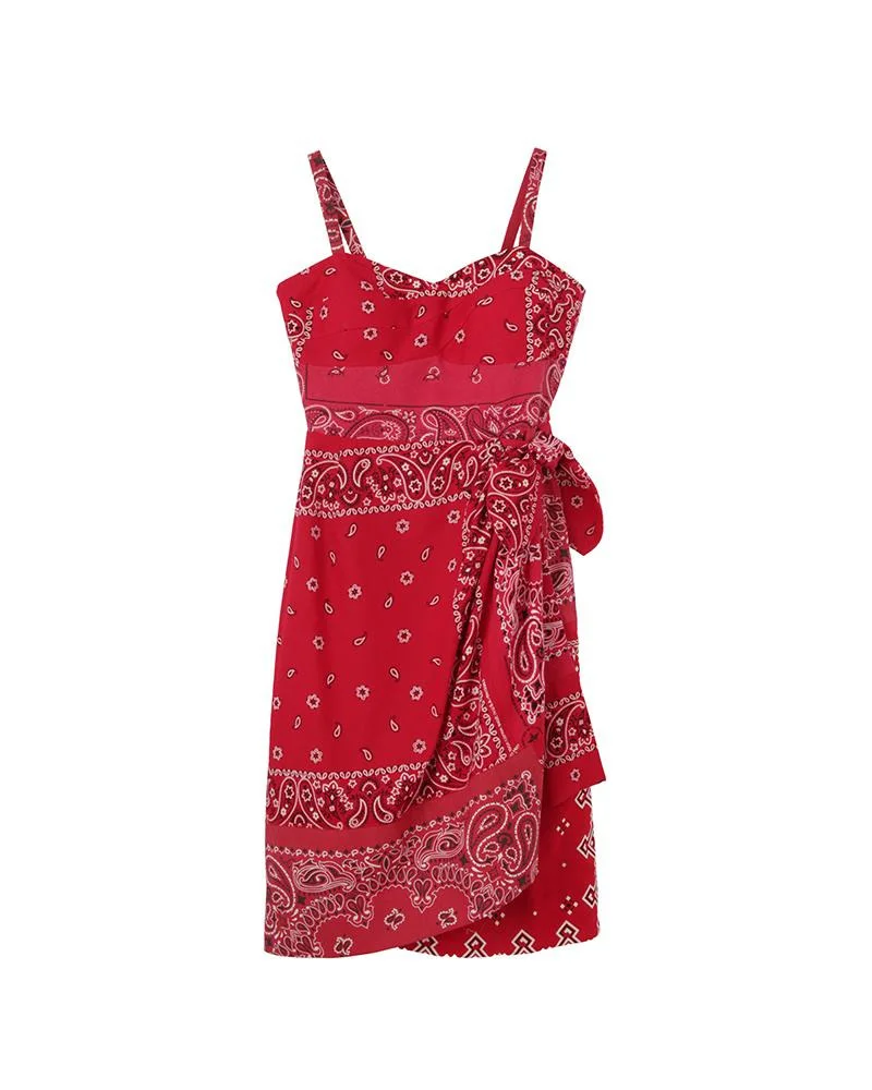 BUSTIER DRESS W COLOR: RED SIZE: 00, 0, 1, 2, 3 A dress made with vintage bandanas and arranged in a patchwork layout that is lined with a custom material that features a Native American print Natural Dye Custom Bone Buttons 100% COTTON UNIT:cm : Please be aware that there is a possibility for slight variations in the color appearance and pattern on the fabric that is utilized for this product; each finished garment may be different from the displayed product image. There may also be some shrinkage following the first wash of this product. The Kofu, Bandana, Blanket, African Indigo textile and vintage fabrics used for the name tag and actual product itself vary in color and pattern where no two pieces are alike. Additionally, the degree of deterioration will vary with each fabric depending on its age and historical use so these products should be considered more fragile in comparison to our regularly manufactured products. SIZE LENGTH CHEST 00 97.5 82 0 102.5 82 1 104 86 2 105.5 91 3 107 96