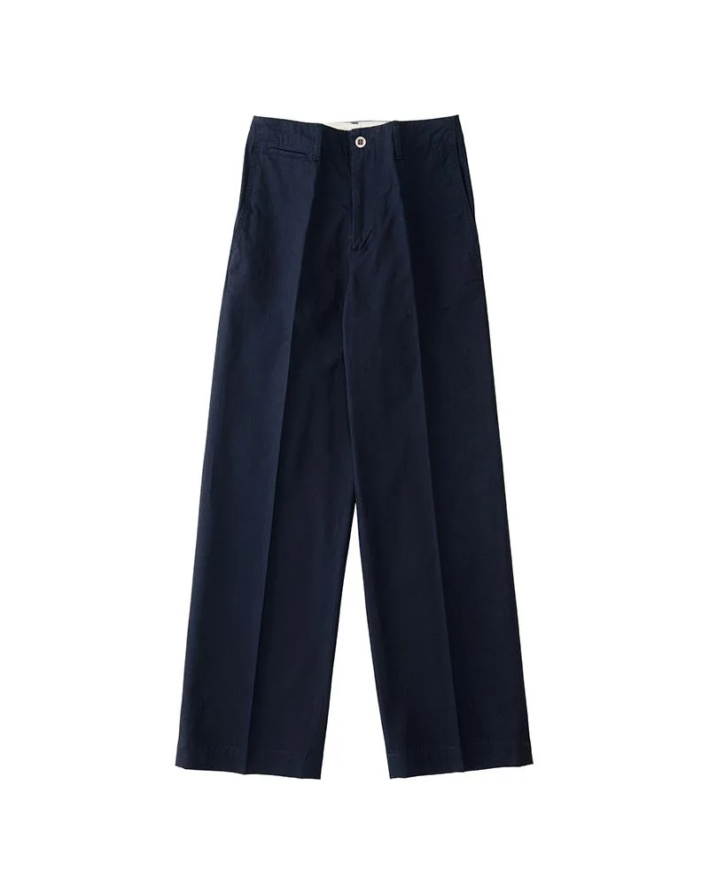 CHINO PANTS W COLOR: NAVY, BEIGE SIZE: 00, 0, 1, 2, 3 Chino pants made of extra-long staple cotton and woven with high density One-wash finish Original zipper slider Original PEERLESS engraved metal buttons Please Note : 100% Cotton SIZE 00 : Waist 69.5 , Inseam 71.3 , Thigh width 32.6 , Hem width 25 (cm) SIZE 0 : Waist 69.5 , Inseam 77.8 , Thigh width 32.6 , Hem width 25 (cm) SIZE 1 : Waist 73.5 , Inseam 79.3 , Thigh width 33.8 , Hem width 26 (cm) SIZE 2 : Waist 77.5 , Inseam 80.8 , Thigh width 35 , Hem width 27 (cm) SIZE 3 : Waist 81.5 , Inseam 82.3 , Thigh width 36.2 , Hem width 28 (cm) The color and pattern of the fabric used may differ slightly from the image. Some shrinkage may occur after washing. Please be aware.