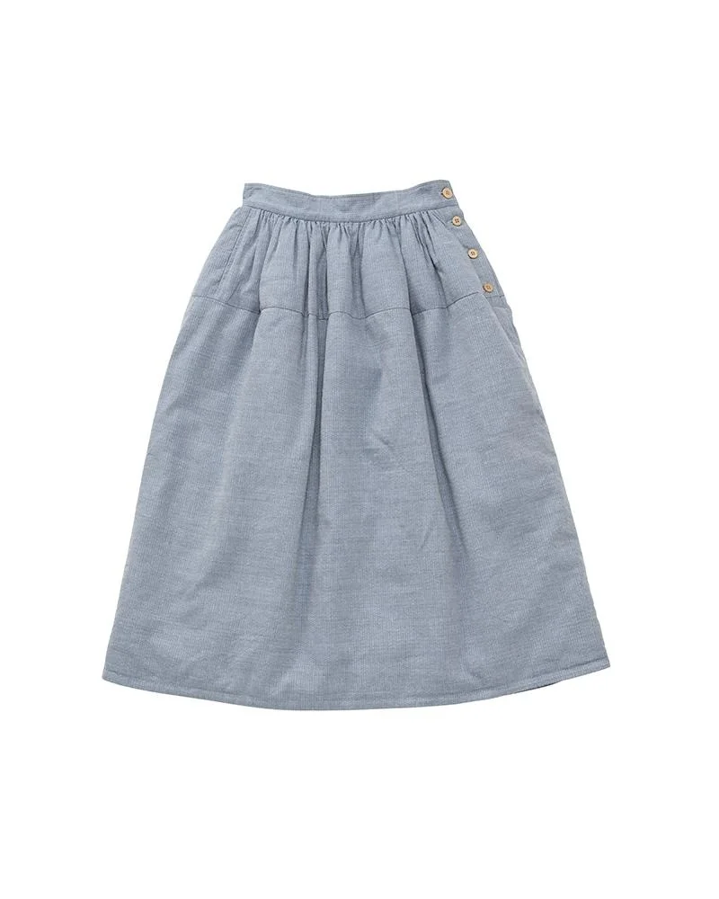 ELEVATION DOWN SKIRT W COLOR: BLACK, BLUE SIZE: 00, 0, 1, 2, 3 Custom Woven Sashiko Patterned Wool Linen Skirt One Wash White Goose Down Fill Custom Water Buffalo Buttons 65% Wool 35% Linen UNIT:cm Please be aware that there may be slight variations in the color of the fabric and pattern than shown in the images. There will be slight shrinkage when washing for the first time. SIZE LENGTH WAIST 00 76 68 0 81 68 1 82.5 72 2 84 76 3 85.5 80
