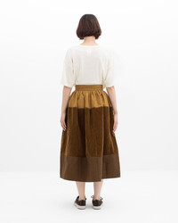 ELEVATION SKIRT P.W. WOOL CORDS W COLOR: BLACK, LT.BROWN SIZE: 00, 0, 1, 2, 3 Custom Patchwork Wool Cotton Corduroy, Twill, and Gabardine Blend Skirt Pressed Finish Custom Water Buffalo Buttons 100% Wool (Pile) 100% Cotton (Base Cloth) UNIT:cm : Please be aware that there may be slight variations in the color of the fabric and pattern than shown in the images. There will be slight shrinkage when washing for the first time. SIZE LENGTH WAIST 00 77.5 68 0 82.5 68 1 84 72 2 85.5 76 3 87 80
