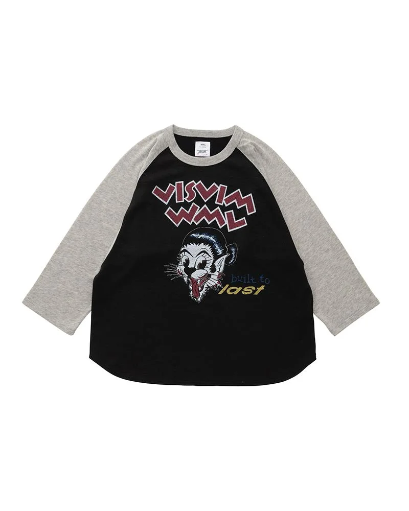 GRIDIRON TEE L/S (SUPERFINE) W COLOR: BLACK, GREY SIZE: 0, 1, 2, 3 Custom Plated Wool Raglan Sleeve T-Shirt Custom Jersey Wool Cotton Blend Sleeves One Wash "VISVIM WMV built to last" Print Detail 100% Wool Made in Japan UNIT:cm : SIZE LENGTH CHEST SLEEVE 0 57.4 102 59 1 58.9 106 60.5 2 60.4 111 62.3 3 61.9 116 64.1