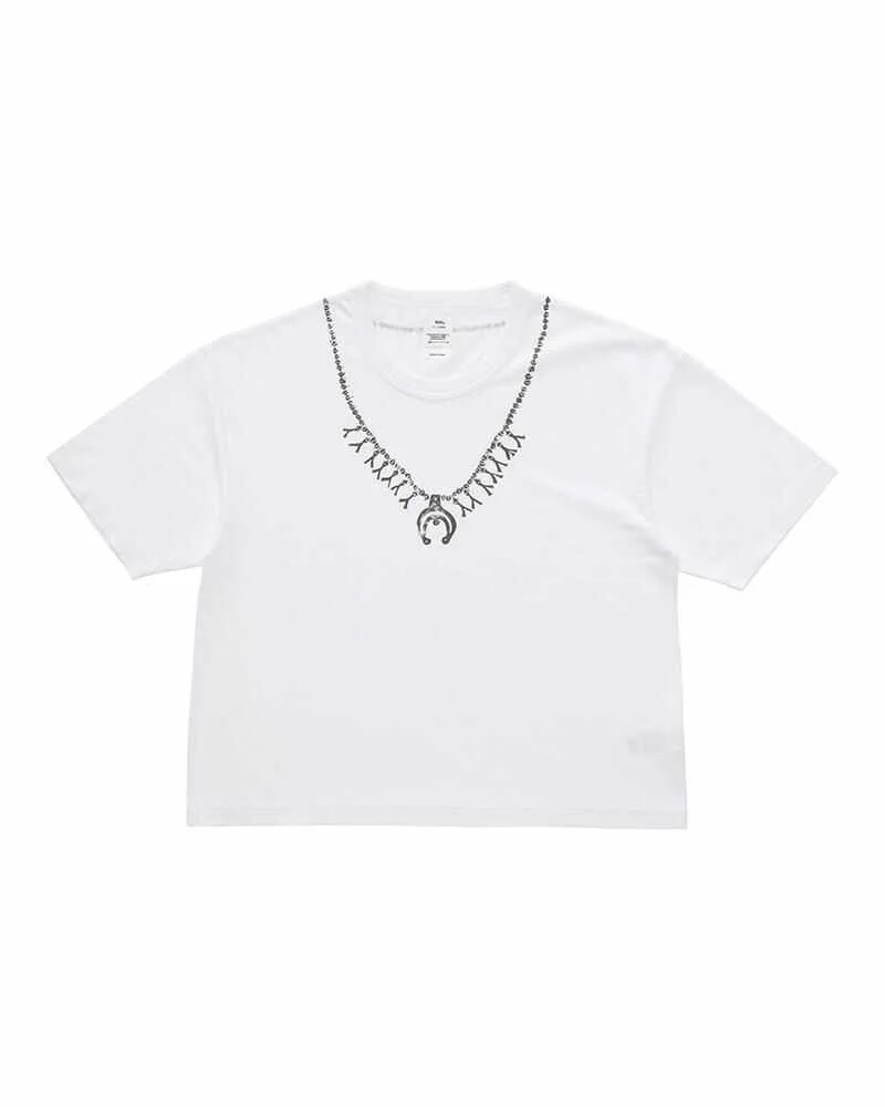 INYAN TEE S/S (SEA ISLAND) W COLOR: WHITE SIZE: 0, 1, 2, 3 Sea Island Cotton Crewneck Short Sleeve T-shirt Jumbo Silhouette One Wash "SQUASH BLOSSOM NECKLACE" print details 100% COTTON UNIT:cm : Please be aware that there may be slight variations in the color of the fabric and pattern than shown in the images. There will be slight shrinkage when washing for the first time. SIZE LENGTH CHEST SHOULDER SLEEVE 0 61 110 55 21.5 1 63 114 56.5 22 2 65 119 58.5 23 3 67 124 60.5 24