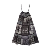 Khapa dress made from original bandanas Mud overdyed Damage processed Please Note : Shell : 100% Cotton Liner : 100% Cotton SIZE 0 : Length 34.8 , Bust 42.5 (inch) SIZE 1 : Length 36.2 , Bust 44.1 (inch) Please be aware that the vintage fabric, bandanas, and african indigo fabric used may vary in color and pattern from item to item. With time, these fabrics may also become weaker and less tear-resistant. Also, due to the use of natural dyes, the outward appearance of items may vary slightly from one another. For certain items, mud may be applied for an added effect. Products may shrink slightly when washed.