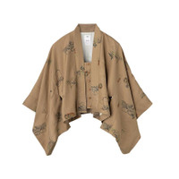 KIMONO CROPPED JKT W COLOR : WHITE , BEIGE SIZE : 0 , 1 , 2 , 3 (WOMEN’S) Kimono jacket made from silk screen printed silk fabric Original bamboo buttons Please Note : 100% Silk SIZE 0 : Length 18.9 , Shoulder 23.4 , Sleeve 12.2 , Chest 46.6 (inch) SIZE 1 : Length 19.7 , Shoulder 24.2 , Sleeve 12.8 , Chest 48.2 (inch) SIZE 2 : Length 20.5 , Shoulder 25.2 , Sleeve 13.4 , Chest 50.2 (inch) SIZE 3 : Length 21.3 , Shoulder 26.1 , Sleeve 14 , Chest 52.1 (inch) Please be aware that the fabric used may vary in color and pattern from item to item. Products may shrink slightly when washed.