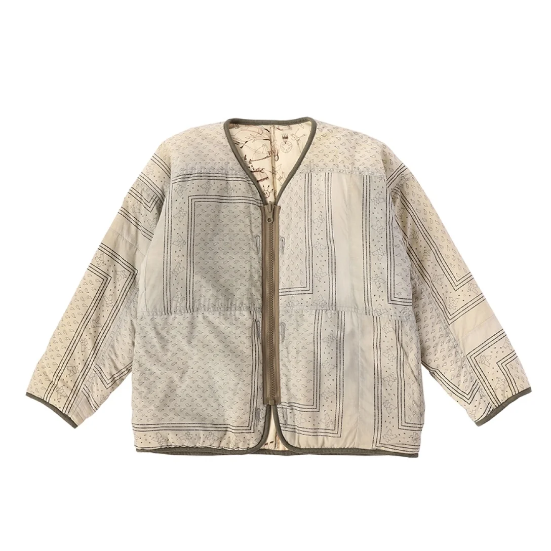 KIMONO LINER JKT (S) BANDAWA P.W. COLOR : GREY , KHAKISIZE : 00 , 0 , 1 , 2 , 3 (WOMEN’S) Patchwork kimono liner jacket made from bandana printed khadi fabricOne washNative American print lining Polyester fillingSwiss riri® zippersReversible Please Note : 100% CottonSIZE 00 : Length 23.9 , Shoulder 22.8 , Sleeve 16.3 , Chest 45.3 (inch) SIZE 0 : Length 24.9 , Shoulder 22.8 , Sleeve 17.5 , Chest 45.3 (inch) SIZE 1 : Length 25.7 , Shoulder 23.6 , Sleeve 17.9 , Chest 46.9 (inch) SIZE 2 : Length 26.5 , Shoulder 24.6 , Sleeve 18.6 , Chest 48.8 (inch) SIZE 3 : Length 27.3 , Shoulder 25.6 , Sleeve 19.3 , Chest 50.8 (inch) LOOKBOOK / Height : 5'9" , Size : 0 Please be aware that the fabric used may vary in color and pattern from item to item. Products may shrink slightly when washed.