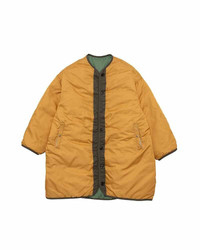 LINER COAT W COLOR: BLACK, GREEN SIZE: 00, 0, 1, 2, 3 A Down Coat made from a woven Nylon twill fabric Damaged Finish Natural Dye Finish White Goose Down Fill Custom Water Buffalo Buttons Custom Snap Buttons Reversible 100% NYLON UNIT:cm : Items that are finished with Natural Dye will experience different textural finishes where no two are alike. Also, there may be pieces that have mud left on the finished garment as a result of the treatment. Please be aware that there may also be slight variations in the color of the fabric and pattern than shown in the images. There will be slight shrinkage when washing for the first time. SIZE LENGTH CHEST SHOULDER SLEEVE 00 85.5 141 61.3 45 0 89.5 145 62.8 48 1 92 149 64.3 49.2 2 94.5 154 66.3 51.2 3 97 159 68.3 53.2