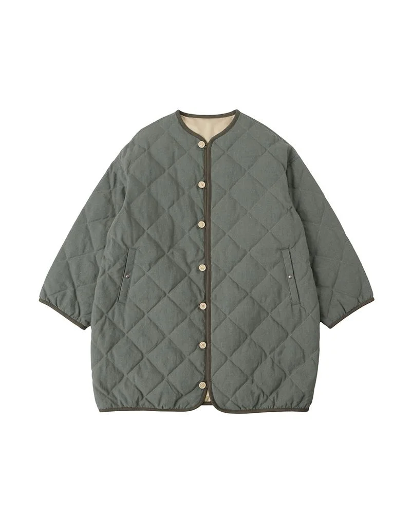 LINER COAT W COLOR: LT.GREEN, KHAKI SIZE: 00, 0, 1, 2, 3 A Quilted Down Coat made from a custom Wool/Linen Twill fabric Pressed Finish White Goose Down Fill Custom Water Buffalo Buttons Custom Snap Buttons Reversible Style 62% WOOL 38% LINEN UNIT:cm : Please be aware that there may also be slight variations in the color of the fabric and pattern than shown in the images. There will be slight shrinkage when washing for the first time. SIZE LENGTH CHEST SHOULDER SLEEVE 00 85.5 131 62.7 45 0 89.5 135 64.2 48 1 92 139 65.7 49.2 2 94.5 144 67.7 51.2 3 97 149 69.7 53.2