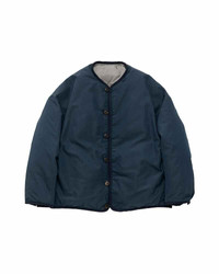 LINER JKT W COLOR: NAVY, OLIVE SIZE: 00, 0, 1, 2, 3 A Down Jacket made from a woven Wool/Silk Army Twill fabric Pressed Finish White Goose Down Fill Custom Water Buffalo Buttons Reversible 62% WOOL 38% SILK UNIT:cm : Please be aware that there may be slight variations in the color of the fabric and pattern than shown in the images. There will be slight shrinkage when washing for the first time. SIZE LENGTH CHEST SHOULDER SLEEVE 00 63.5 120 64 44.5 0 65.5 120 64 46.5 1 67.5 124 65.5 47.7 2 69.5 129 67.5 49.7 3 71.5 134 69.5 51.7