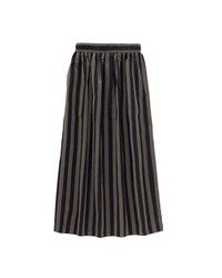 MAXI SKIRT STRIPE (N.D.) W COLOR: BLACK, BLUE SIZE: 00, 0, 1, 2, 3 A Skirt made from a custom natural dyed Wool/Linen boarder patterned fabric Custom Water Buffalo Buttons 80% WOOL 20% LINEN UNIT:cm : Items that are finished with Natural Dye will experience different textural finishes where no two are alike. Also, there may be skirts that have mud left on the finished garment as a result of the treatment. There may be slight variations in the color of the fabric and pattern than shown in the images.There will also be slight shrinkage when washing for the first time. SIZE LENGTH WAIST 00 86.3 69 0 96.3 69 1 97.3 73 2 98.3 77 3 99.3 81
