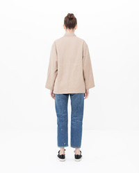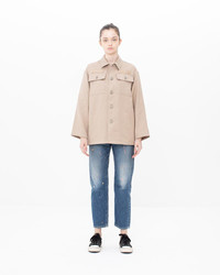 P.A. MIL JKT W COLOR: OLIVE, BEIGE SIZE: 00, 0, 1, 2, 3 A Jacket made from custom Linen/Wool Backsatin fabric Pressed Finish Custom Iron Buttons 64% LINEN 36% WOOL UNIT:cm : Please be aware that there may be slight variations in the color of the fabric and pattern than shown in the images. There will be slight shrinkage when washing for the first time. SIZE LENGTH CHEST SHOULDER SLEEVE 00 66.6 110 50.2 47.9 0 69.6 110 50.2 50.9 1 71.6 114 51.7 52.1 2 73.6 119 53.7 54.1 3 75.6 124 55.7 56.1