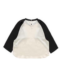 RAGLAN BLOUSE (CHIRIMEN) COLOR: BLACK, NAVY SIZE: 0, 1, 2, 3 A Shirt made with a Silk Satin fabric and Silk Kimono fabric from the Tango region of Kyoto Pressed Finish Custom bone buttons 100% SILK UNIT:cm : Please be aware that there may be slight variations in the color of the fabric and pattern than shown in the images. There will be slight shrinkage when washing for the first time. SIZE LENGTH CHEST SLEEVE 0 57.5 102 60 1 59.5 106 61.7 2 61.5 111 63.7 3 63.5 116 65.7