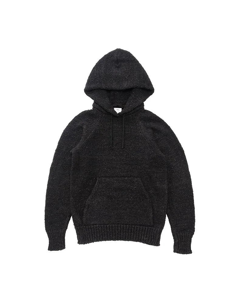 RAGLAN HOODIE P.O. KNIT (MAWATA) W COLOR: BLACK, NATURAL SIZE: 0, 1, 2, 3 Custom Knit Mawata Pullover Hoodie Pressed Finish 100% Silk UNIT:cm : Measurements on the spec sheet indicates the measurements when worn. Please be aware that there may be slight variations in the color of the fabric and pattern than shown in the images. There will be slight shrinkage when washing for the first time. SIZE LENGTH CHEST SLEEVE 0 61.5 83 80 1 63 87 82 2 64.5 92 84.2 3 66 97 86.4