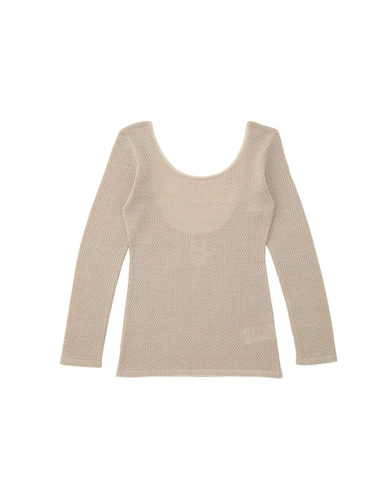 ROUND NECK L/S KNIT W COLOR: NAVY, IVORY SIZE: 0, 1, 2, 3 Knit round neck top with a zig zag pattern made from a wool / silk blend yarn Pressed Finish Please Note : 86% WOOL,14% SILK SIZE 0 : LENGTH 58.5 , CHEST 72 , SHOULDER 33.5 , SLEEVE 53 (cm) SIZE 1 : LENGTH 60.5 , CHEST 76 , SHOULDER 35 , SLEEVE 54.5 (cm) SIZE 2 : LENGTH 62.5 , CHEST 81 , SHOULDER 37 , SLEEVE 56.5 (cm) SIZE 3 : LENGTH 64.5 , CHEST 86 , SHOULDER 39 , SLEEVE 58.5 (cm) Please be aware that there may also be slight variations in the color of the fabric and pattern than shown in the images. There will be slight shrinkage when washing for the first time.