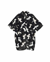 RUANA BLOUSE HIKAKU COLOR: BLACK, LT.GREEN SIZE: 0, 1 Rayon fabric shirt with a custom printed graphic Pressed Finish Custom Bamboo buttons Please Note : 100% RAYON SIZE 0 : L 68 , W 89.5 (cm) SIZE 1 : L 70 , W 91.5 (cm) Please be aware that there may also be slight variations in the color of the fabric and pattern than shown in the images. There will be slight shrinkage when washing for the first time.