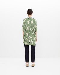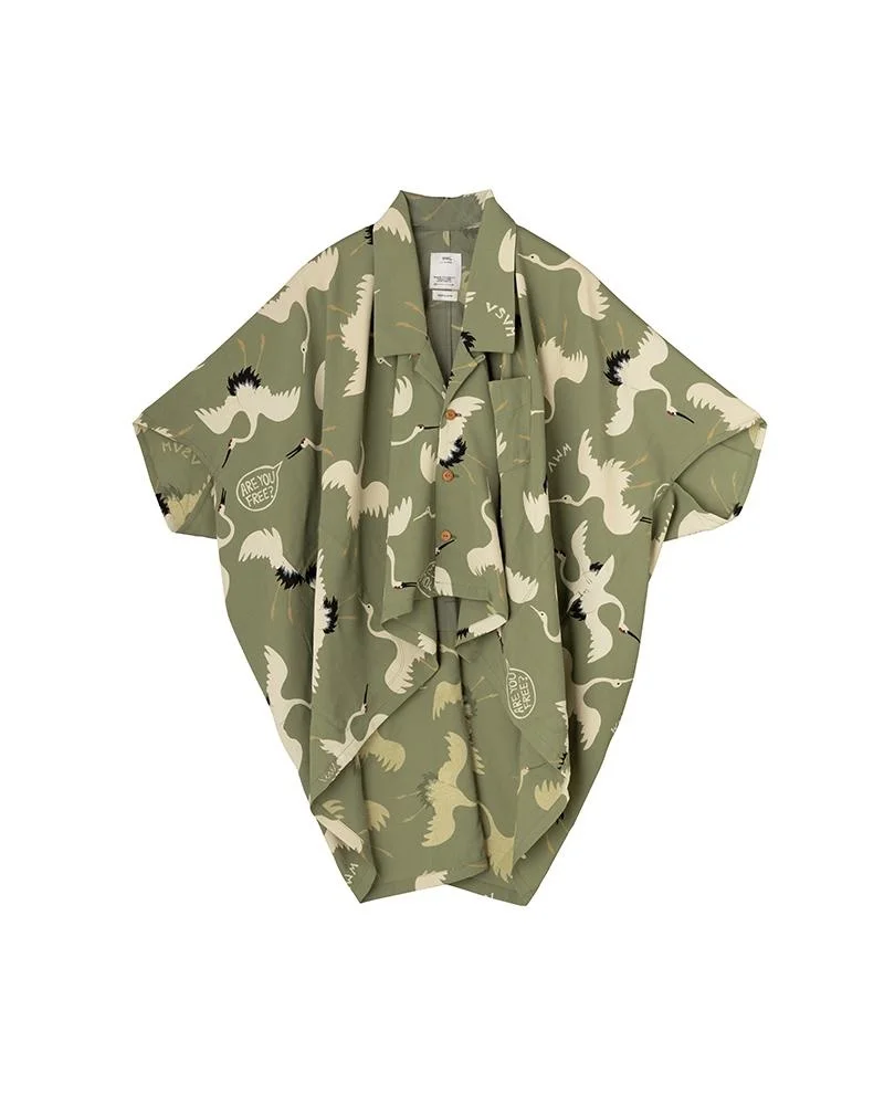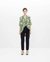 RUANA BLOUSE HIKAKU COLOR: BLACK, LT.GREEN SIZE: 0, 1 Rayon fabric shirt with a custom printed graphic Pressed Finish Custom Bamboo buttons Please Note : 100% RAYON SIZE 0 : L 68 , W 89.5 (cm) SIZE 1 : L 70 , W 91.5 (cm) Please be aware that there may also be slight variations in the color of the fabric and pattern than shown in the images. There will be slight shrinkage when washing for the first time.