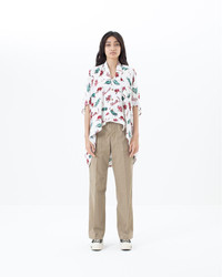 RUANA BLOUSE SUNNYBIRD COLOR: NAVY, RED SIZE: 0, 1 Poncho blouse made from fine silk fabric One wash 100% Silk SIZE 0 : Length 27.8 , Width 35.2 (inch) SIZE 1 : Length 28.7 , Width 36 (inch) Please be aware that the fabric used may vary in color and pattern from item to item. Products may shrink slightly when washed.
