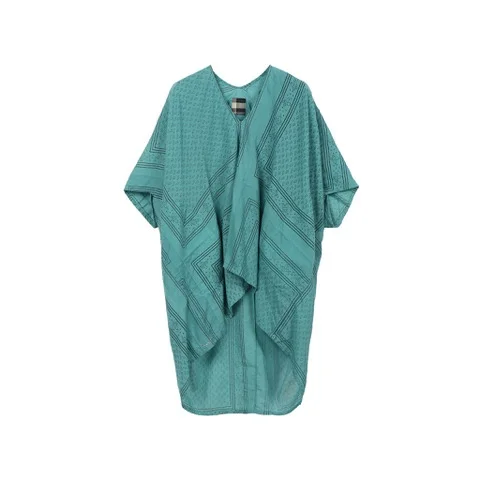RUANA SHIRT Poncho shirt made from bandana printed khadi fabric Garment dyed Please Note : 100% Cotton SIZE 0 : Length 30.7 , Width 35.2 (inch) SIZE 1 : Length 31.9 , Width 36 (inch) Please be aware that the vintage fabric, bandanas, and african indigo fabric used may vary in color and pattern from item to item. With time, these fabrics may also become weaker and less tear-resistant. Also, due to the use of natural dyes, the outward appearance of items may vary slightly from one another. For certain items, mud may be applied for an added effect. Products may shrink slightly when washed.