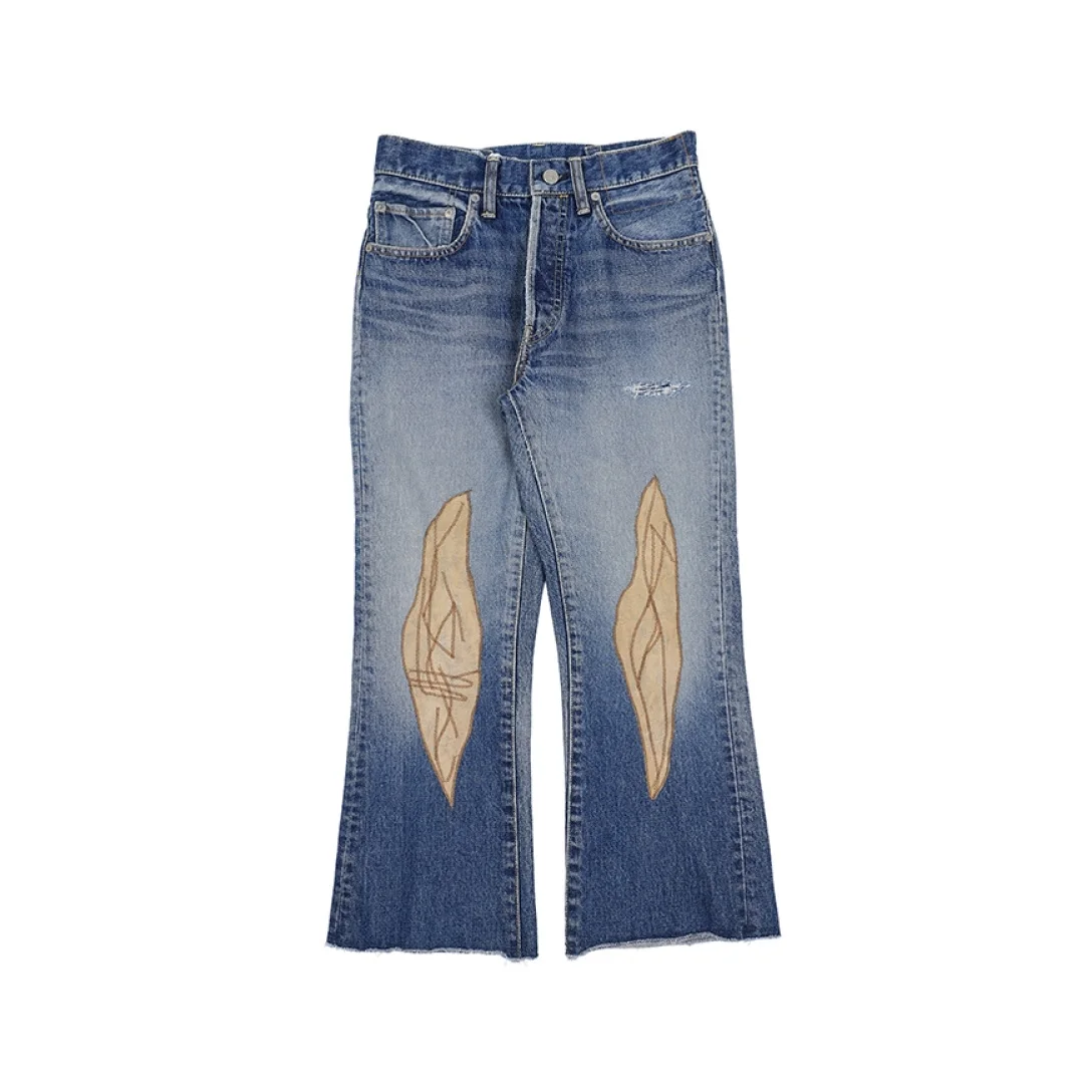 SOCIAL SCULPTURE W06 DMGD-23 COLOR : ONE COLOR SIZE : 00 , 0 , 1 , 2 , 3 (WOMEN’S) Original 14oz denim pants Damage processed Regular fit, flared silhouette Medium rise Button fly Custom black selvedge outseam French vegetable-tanned lambskin patch detail Hidden zippered back pocket Original buttons, sliders, rivets Natural-dyed German brain-tanned elk patch Please Note : 100% Cotton SIZE 00 : Waist 29.1 , Inseam 23.2 , Thigh width 11.1 , Hem width 9.1 (inch) SIZE 0 : Waist 29.1 , Inseam 26.6 , Thigh width 11.1 , Hem width 9.1 (inch) SIZE 1 : Waist 30.7 , Inseam 27.2 , Thigh width 11.6, Hem width 9.5 (inch) SIZE 2 : Waist 32.3 , Inseam 27.8 , Thigh width 12 , Hem width 9.9 (inch) SIZE 3 : Waist 33.9 , Inseam 28.3 , Thigh width 12.5 , Hem width 10.3 (inch) Please be aware that the fabric used may vary in color and pattern from item to item. Products may shrink slightly when washed.