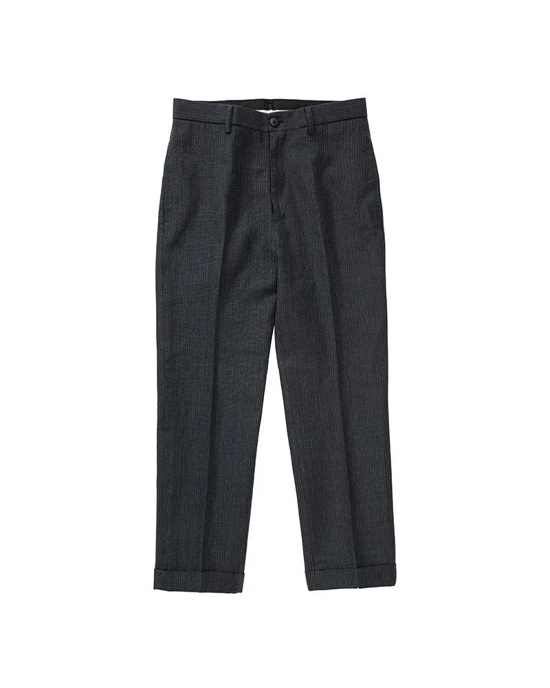 TIGHT SLACKS SANTOME (N.D.) W COLOR: DK.INDIGO SIZE: 00, 0, 1, 2, 3 Custom Natural Indigo Dyed Linen Wool Blend Pants Pressed Finish Custom Water Buffalo Buttons and Zip Fastener 57% Linen 43% Wool UNIT:cm : Items that are finished with Natural Dye will experience different textural finishes where no two are alike. Also, there may be pieces that have mud left on the finished garment as a result of the treatment. Please be aware that there may also be slight variations in the color of the fabric and pattern than shown in the images. There will be slight shrinkage when washing for the first time. SIZE LENGTH INSEAM WAIST THIGH WIDTH HEM 00 86 58.6 76 28 19 0 90 62.6 76 28 19 1 91.5 63.6 80 29.2 20 2 93 64.6 84 30.4 21 3 94.5 65.6 88 31.6 22