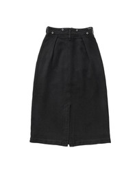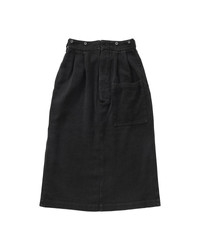 WORK SKIRT DMGD W COLOR: BLACK, BLUE SIZE: 00, 0, 1, 2, 3 Custom Twill Wool Linen Blend Pants Garment Dyed and Damaged Finish Custom Water Buffalo Buttons 62% Wool 38% Linen UNIT:cm : Please be aware that there may be slight variations in the color of the fabric and pattern than shown in the images. There will be slight shrinkage when washing for the first time. SIZE LENGTH WAIST 00 82 69.7 0 90 69.7 1 91 73.7 2 92 77.7 3 93 81.7
