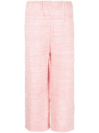 marl-knit cropped trousers marl-knit cropped trousers from VITELLI featuring light pink, linen, marl knit, high waist, elasticated waistband, straight leg and cropped leg. Made in Italy Composition Linen/Flax 100%, Viscose 100%, Polyester 100%, Cotton 100% SIZE & FIT Model measurements Height 5 ft 10 in(1.78 m) Bust/Chest 30.31 in(77 cm) Hips 36.61 in(93 cm) Waist 24.8 in(63 cm) FittingInformation This piece fits true to size. We recommend you get your regular size Designed to be fitted at the waist and hips, loose over the leg Made with a mid-weight fabric