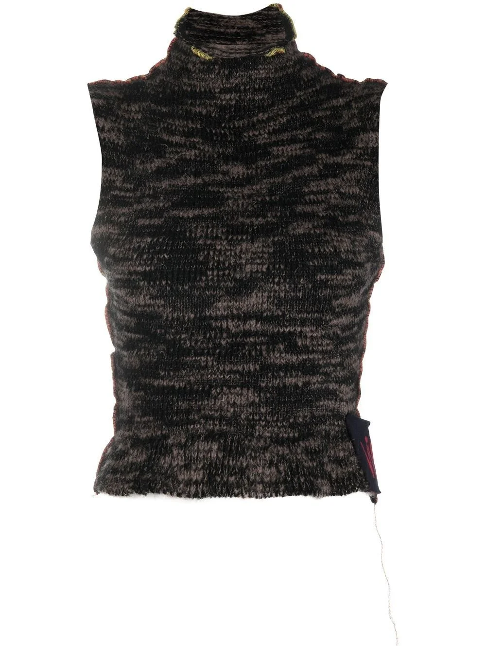 melange-effect sleeveless top charcoal brown wool/mohair melange effect roll neck sleeveless Made in Italy Composition Metallic Fibre 100%, Viscose 100%, Wool 100%, Mohair 100%, Acrylic 100% SIZE & FIT Model measurements Height 5 ft 11 in(1.8 m) Bust/Chest 33.07 in(84 cm) Hips 37.4 in(95 cm) Waist 25.19 in(64 cm) FittingInformation This piece fits true to size. We recommend you get your regular size Cut for a slim fit Made with a mid-weight fabric