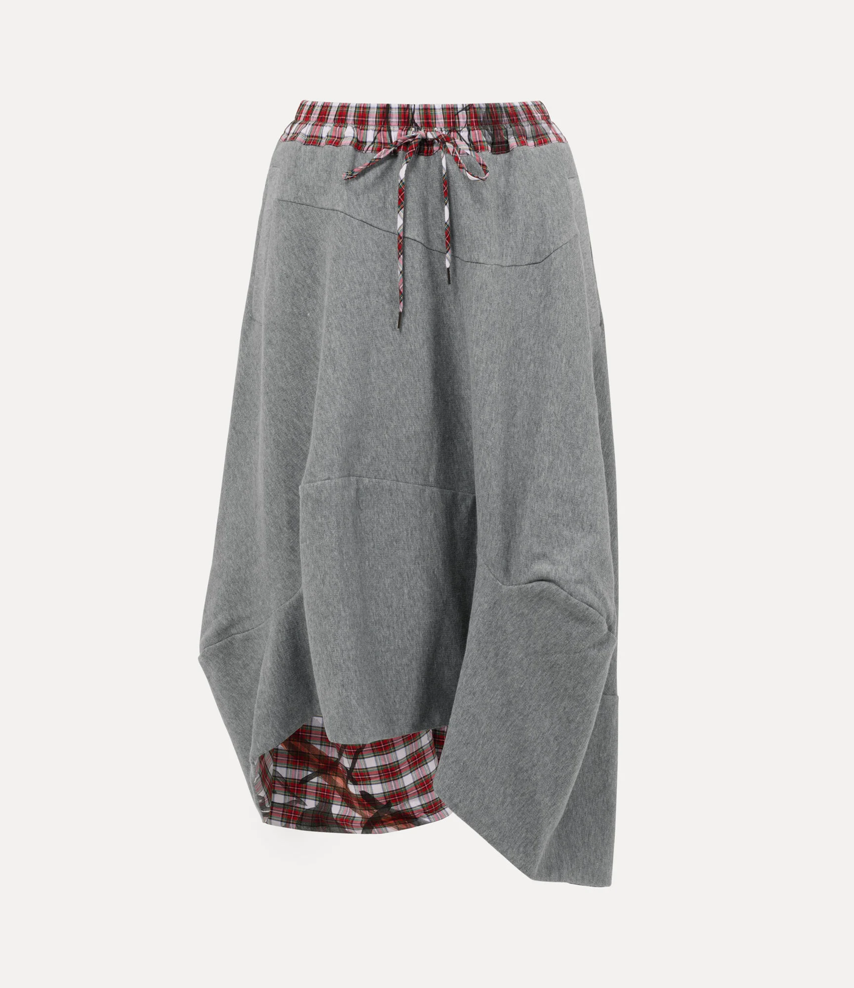 Recalling the house’s Autumn–Winter 2001 Gold Label collection, 'Wild Beauty', our tailored Aerodrome skirt is designed with a high-rise waistband that flows into a soft, asymmetric hemline. Adorned with a layered check lining, overprinted with Dominic Myatt’s vibrant artwork, the piece is finished with a timeless drawstring waistband. Code: 1J01000J-J00AH--GREY-MELANGE - Features an elasticated waistband - Adjustable drawstring fastening - Asymmetric hemline - Voluminous, sculptural shape - Panelled construction - Layered check lining - Minimal front detailing - Model is 5'9/177cm and is wearing a size S COMPOSITION - 100% Organic cotton - Organic fibres are natural fibres grown with strict rules concerning the use of synthetic pesticides, insecticides, or herbicides and GMOs (Genetic Modified Organisms).