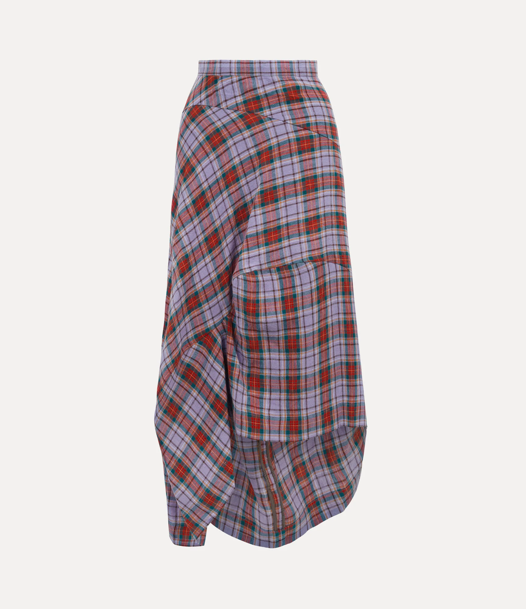Recalling the house's signature Autumn-Winter 2001 Gold Label collection, 'Wild Beauty', our Aeroplane skirt is designed with a high-rise waistband that flows into a soft asymmetric hemline with voluminous folds. Adorned with the bold 'Louth Tartan' motif, the piece is finished with a concealed fastening and diagonal panels that enhance the draped silhouette. Code: 1K01002U-W01C6--MULTI - Features a mid-length asymmetric hemline - Draped detailing with soft folds - Diagonal panel placement - Classic tartan check - High-rise waistline - Concealed side zip fastening - Voluminous draped side panel - Structured waistband - Model is 5'11/180cm and is wearing size 40 - Made in Italy COMPOSITION - 100% Linen