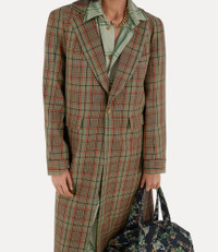 Fastening with a single orb-embossed button in the centre of the design, the Alien Teddy coat is patterned with multicoloured checks. Code: 1D010001-W00MM-SI-GREEN-AND-ORANGE-CHECK - Long sleeves - Checked pattern - Rear vents - Front flap pockets - Collar - Engraved oval-shaped buttons - Notched lapels - Single button closure - Buttoned cuffs - Woven label at the neckline - Fully lined COMPOSITION - 3% Other fibres, 26% Nylon, 71% Wool - The fibres that make up this recycled wool were obtained by shredding used knits and garments from going to landfill. This material does not use chemicals for dyeing.