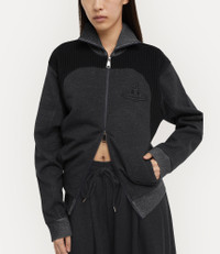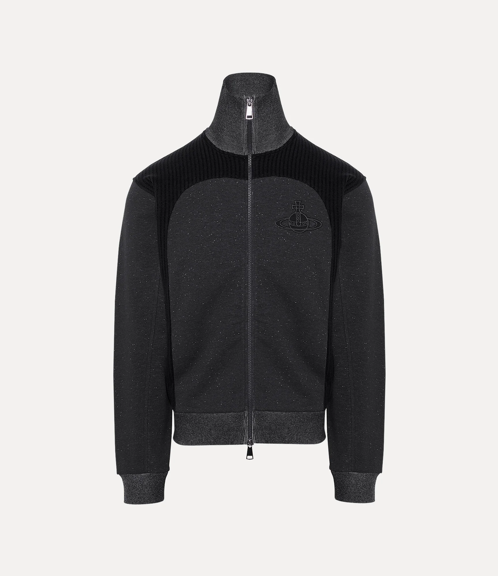 This season’s Alien Track jacket reintroduces the two-way zip fastening - a detail first used by Vivienne Westwood in the late 1970s and early 1980s as a symbol of non-conformity and a hallmark of her rebellious punk aesthetic. Cut with a high neckline and detailed with ribbed panels throughout, the piece is finished with the house’s Graffiti orb motif, subtly embroidered at the chest in tonal thread. Code: 3I010016-J00A3--CHARCOAL - Features Long sleeves - Regular fit - Fits true to size, please take your normal size - High neckline - Ribbed panels - Two-way zip closure - Ribbed cuffs and waistband - Straight hemline - Graffiti orb motif - Model is 6’0/183cm and is wearing a size M COMPOSITION - 100% Organic cotton - Organic fibres are natural fibres grown with strict rules concerning the use of synthetic pesticides, insecticides, or herbicides and GMOs (Genetic Modified Organisms).