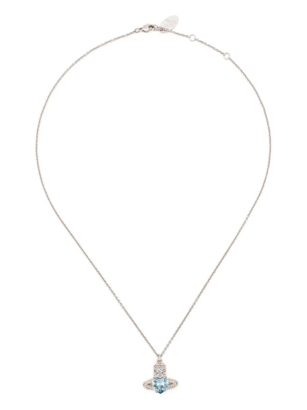 aquamarine heart orb necklace Highlights - Platinum - Aquamarine heart - Orb detail - Clear stones - Silver chain - Lobster claw fastening Imported SIZE & FIT Measurement Length when open 17.71 in(45 cm) PENDANT LENGTH 0.62 in(1.6 cm) PENDANT WIDTH 0.66 in(1.7 cm) WIDTH 0.03 in(0.1 cm)
