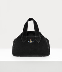 The Medium Yasmine handbag is a new development of our archive Yasmine handbag, first presented at the Gold Label Autumn-Winter 1987/88 runway show titled 'Time Machine'. This season, the piece receives a soft cotton velvet silhouette, complete with an embroidered orb on the front panel - alluding to Vivienne's vision of taking tradition into the future. Code: 8050889987420 - Features a Union Jack lining - Top-handle silhouette - Cotton interior lining - Tonal stitching - Top-zip fastening - Measurements: length 21cm, height 29cm, depth 12cm COMPOSITION - 100% Cotton