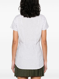 Twisted Bagatelle shirt Highlights - White/black - Organic cotton - Poplin texture - All-over motif embroidery - Oversized pointed collar - Cap sleeves - Twist detailing - Signature orb logo embroidery - Curved hem - Front button fastening Made in Italy Composition Organic Cotton 100% SIZE & FIT Model measurements Height 5 ft 10 in(1.78 m) Bust/Chest 33.07 in(84 cm) Hips 35.82 in(91 cm) Waist 25.98 in(66 cm) FittingInformation Designed to be unstructured, offering a loose fit throughout Made from a midweight non-stretch fabric This piece fits true to size – take your usual size